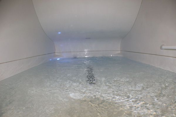 Float therapy involves "floating" in a water-filled sensory deprivation tank, known as a floatation or isolation tank.